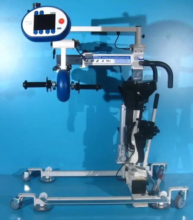 Pacientii pot folosi acest aparat intr-un mod pasiv, asistat de un motor, fie pe un pat de spital sau pe un scaun pentru terapie.