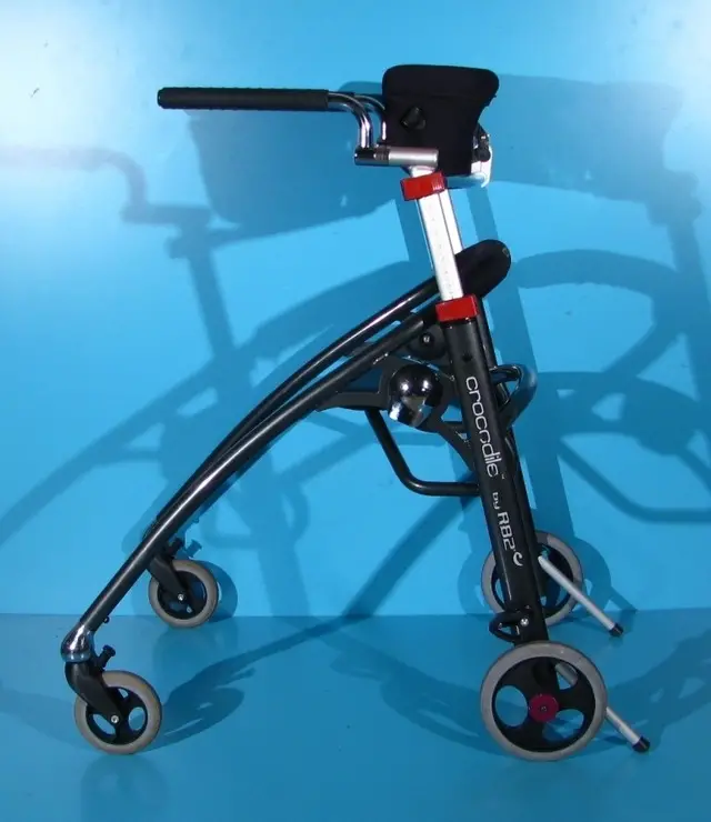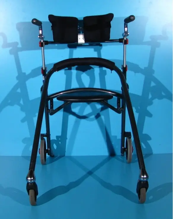 Acest rolator pentru adulti sprijina utilizatorul din spate si promoveaza postura verticala in momentul in care sta in picioare si se deplaseaza.