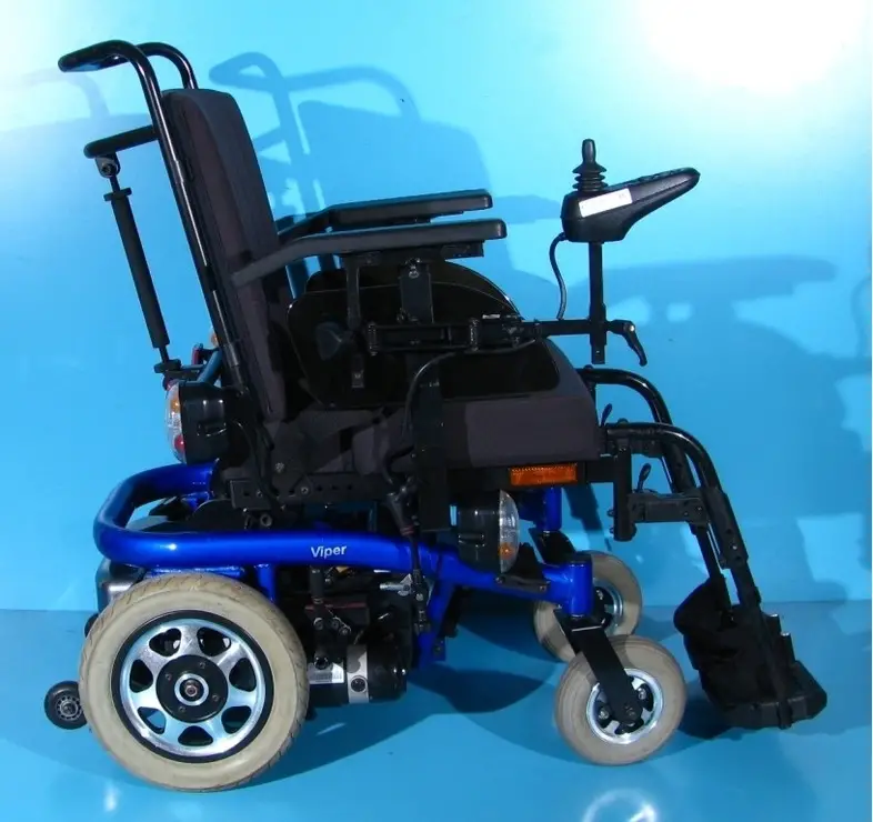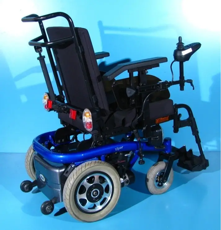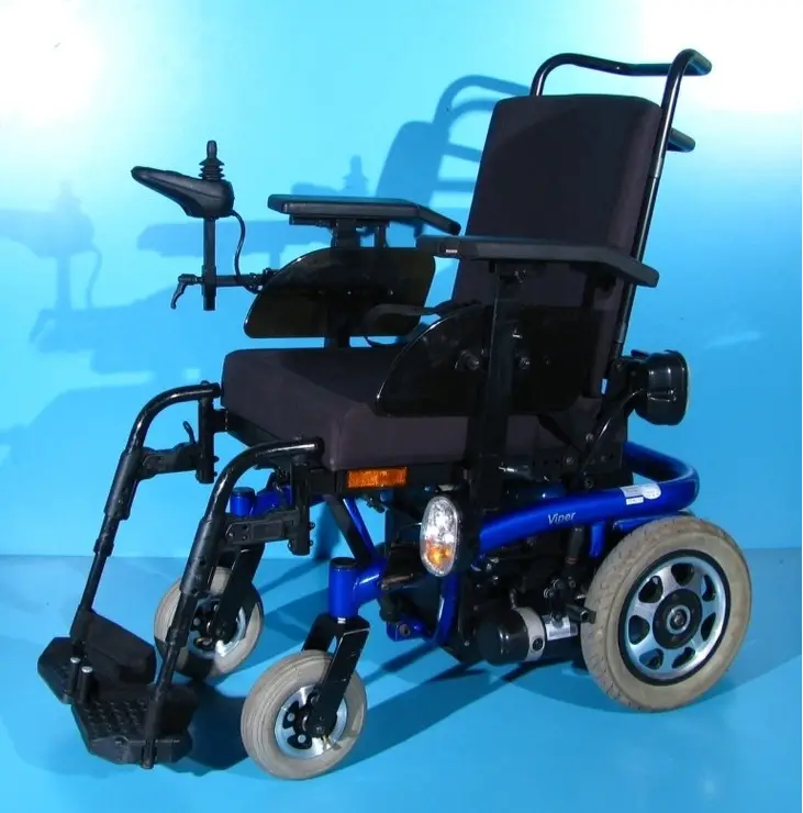 Scaun cu rotile electric, second hand, cu comandă pe joystick, destinat persoanelor cu handicap și celor cu deficiențe locomotorii. Caruciorul electric este proiectat pentru a oferi siguranță, stabilitate și confort, fiind dotat cu sistem de iluminare și semnalizare, ceea ce îi permite utilizarea pe drumurile publice.