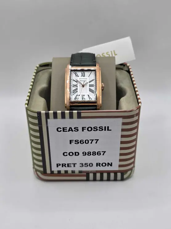 Ceas Fossil Carraway, Quartz, carcasa roz aurie, cadran argintiu, curea piele verde, 5 ATM, Cod: 98867