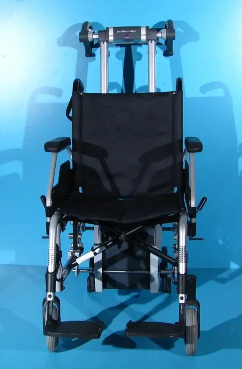 Deplasarea in sus si jos se face cu ajutorul unui motor electric. In timpul deplasarii pe scari, rotile mari ale scaunului cu rotile trebuie detasate.