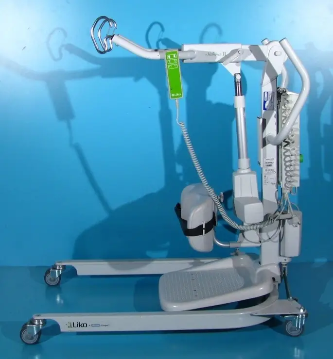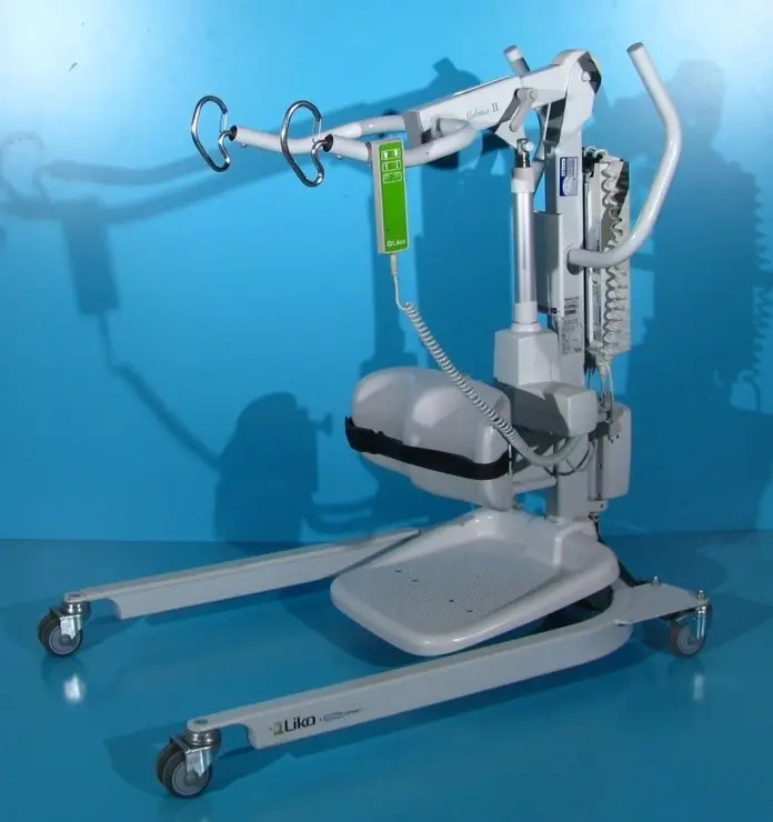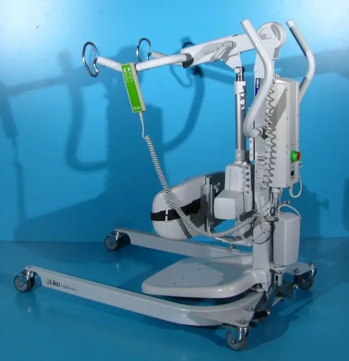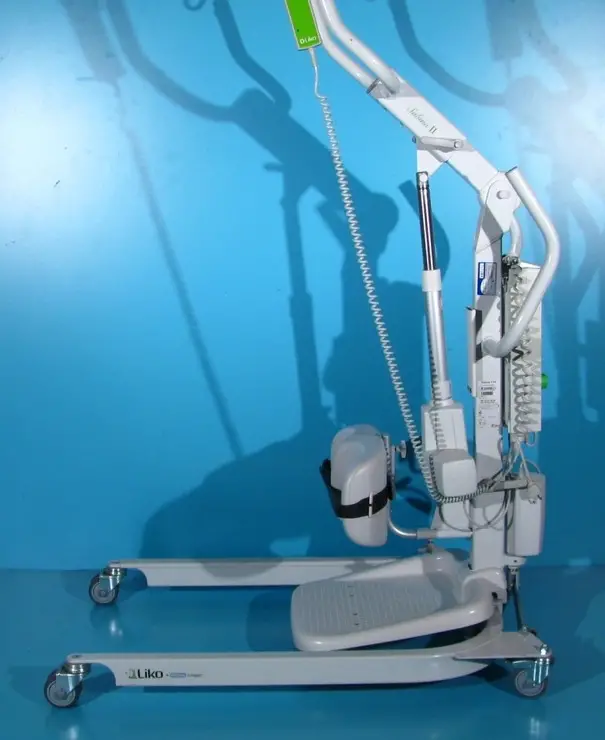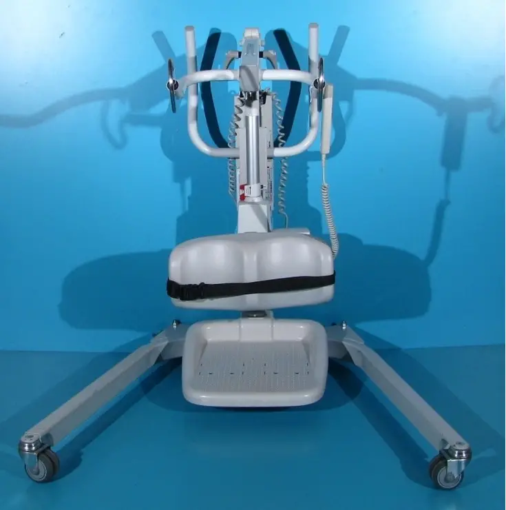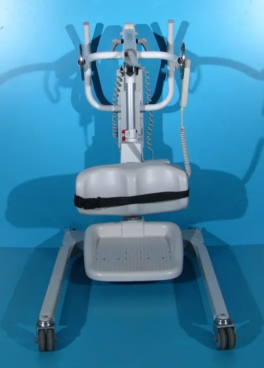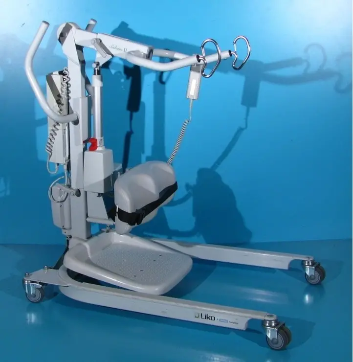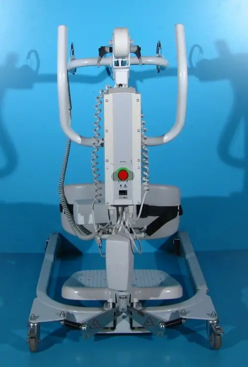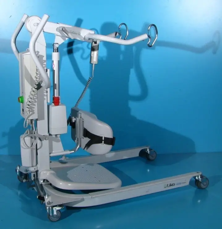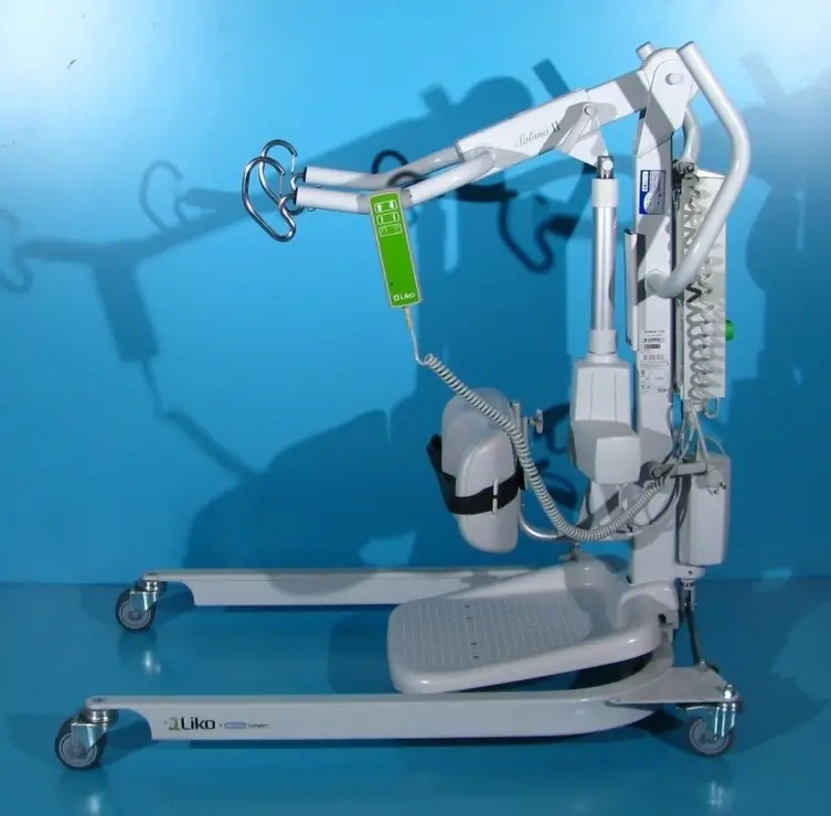 Acest elevator pentru pacienti trebuie operat de catre un asistent pentru ridicare, coborare si deplasare.