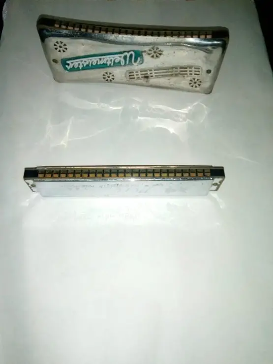 Muzicuta retro, vintage, marca Weltmeister. Dimensiunile sunt : 18,5 cm lungime , 7,5 cm latime. Este utilizata si dezacordata.