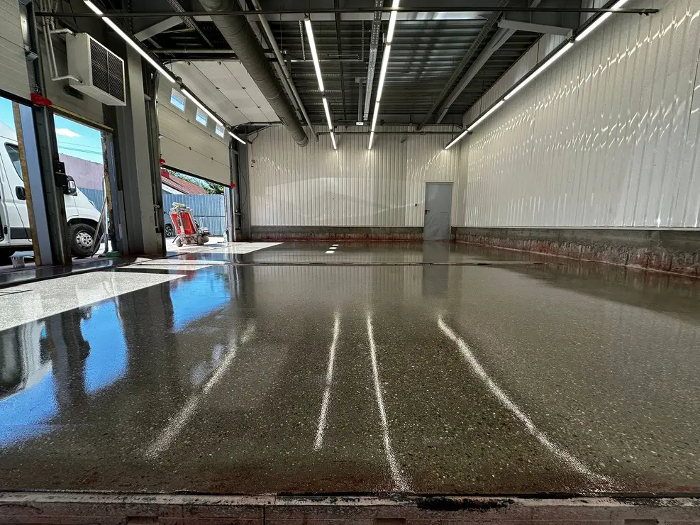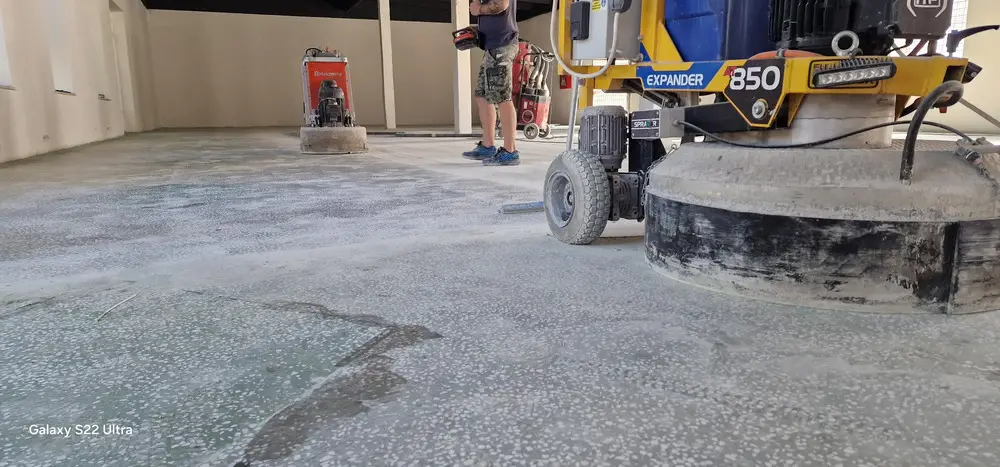 Slefuim betonul cu utilaje mari de slefuit si aspiratoare de praf.