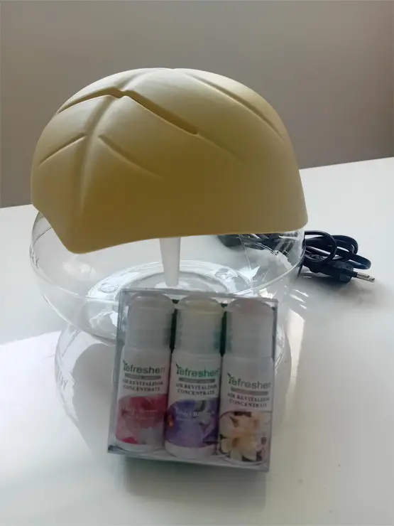 Mod de utilizare: În cuva aparatului se introduce aproximativ 1,5 l apă, se adaugă câteva picături de ulei esențial Refreshen, sau orice alt ulei esențial, se pune capacul peste cuva aparatului și se cuplează la priză. Aparatul are incorporat o lumină ambientală de culoare albastră, relaxantă. Datorită barbotării apei, aparatul Refreshen produce ioni negativi, benefici organismului.