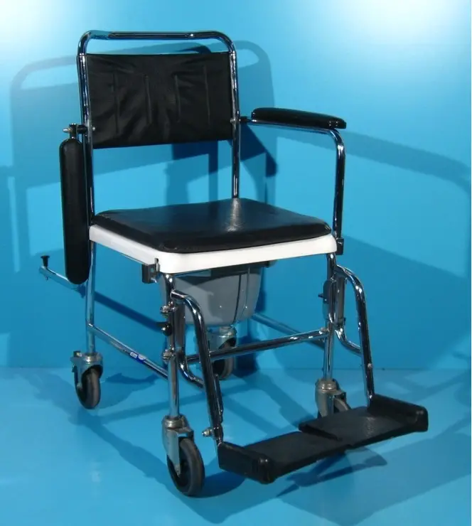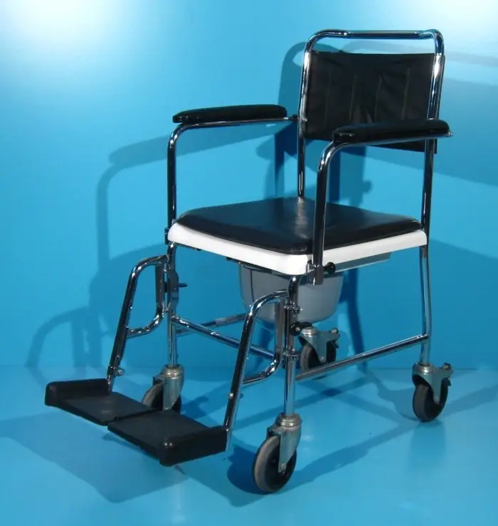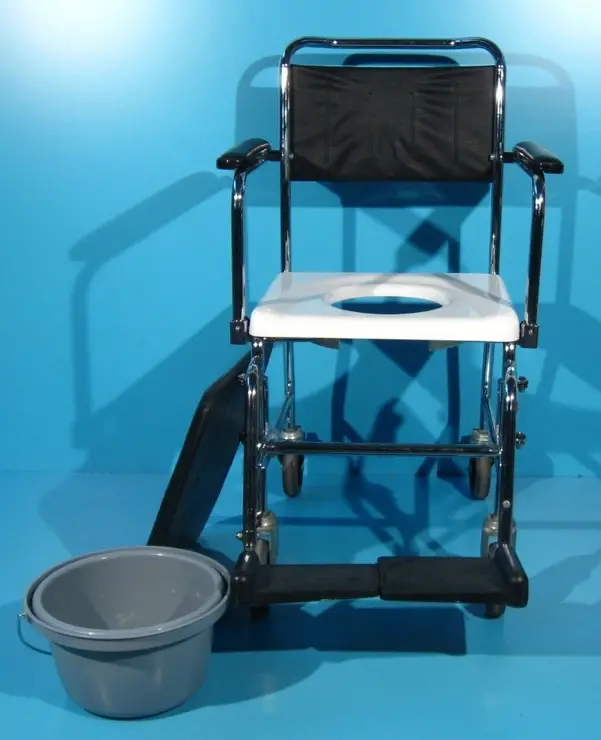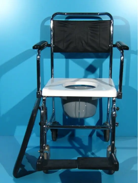 Acest carucior cu wc poate fi folosit in locuinta si ca scaun cu rotile.