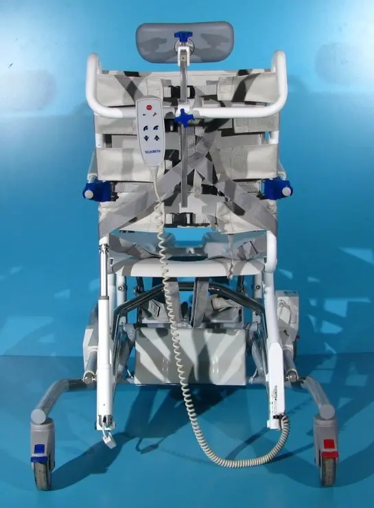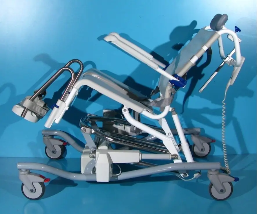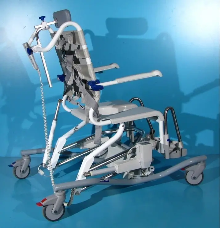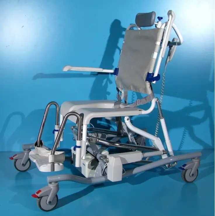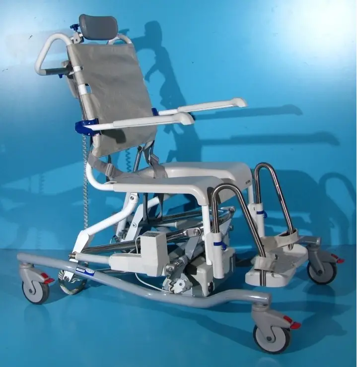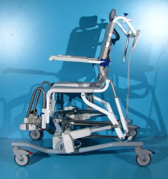 Acest scaun de duș dispune de o gamă de reglaje electrice. Indiferent dacă îngrijitorul are nevoie ca pacientul să fie la o înălțime de ședere mai mare de un metru pentru îngrijire ușoară sau puțin sub 50 cm pentru transferuri fără efort, reglarea înălțimii scaunului Aquatec Ocean e-VIP necesită doar apăsarea unui buton al telecomenzii.