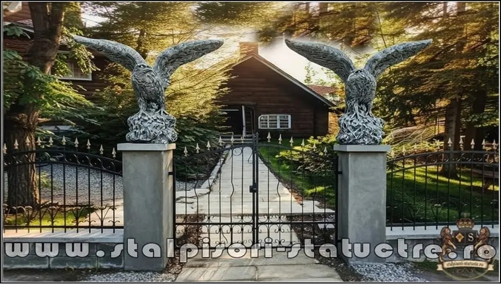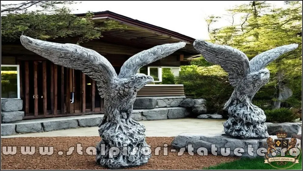Set statuete vulturi pe stâncă, din beton, model S35.