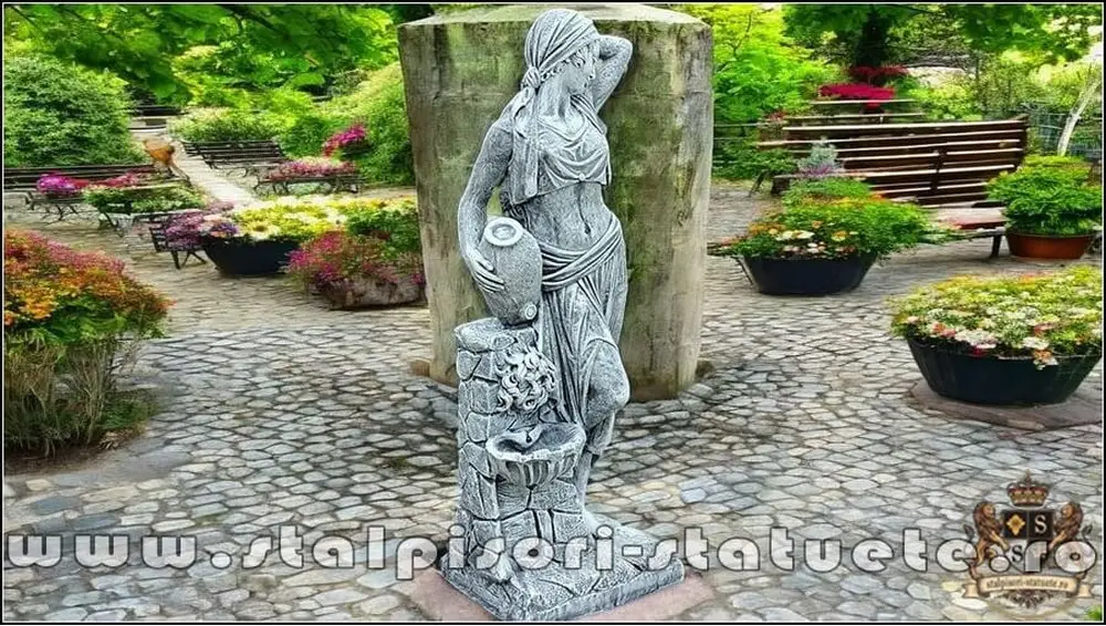 Statuetă țărăncuța la cișmea, gri patinat, model S51.