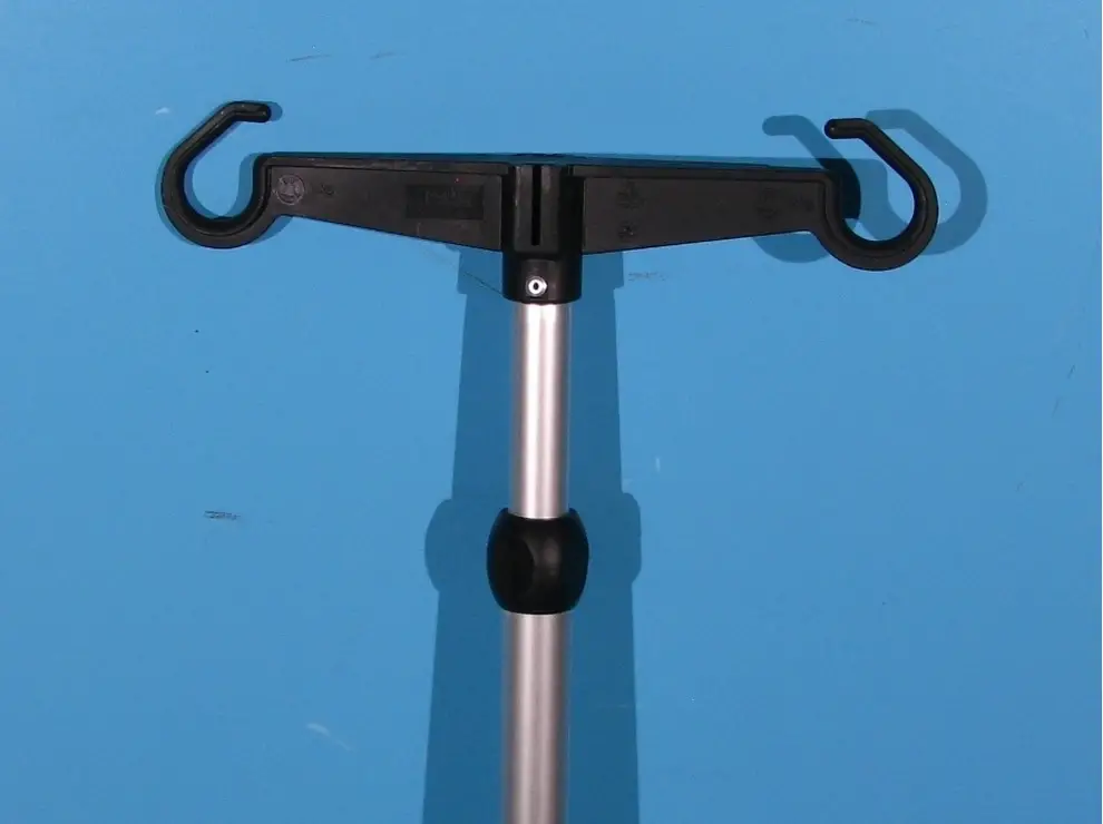 Suport pentru perfuzie cu prindere pe manerul scaunului cu rotile sau pe cel al carucioarelor electrice.