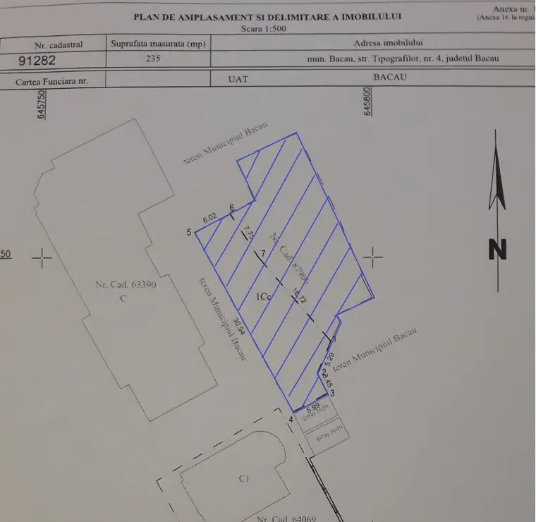 Str. Tipografilor, nr. 4, Bacău (alături de Grădinița Lizuca) cu acces la stradă.