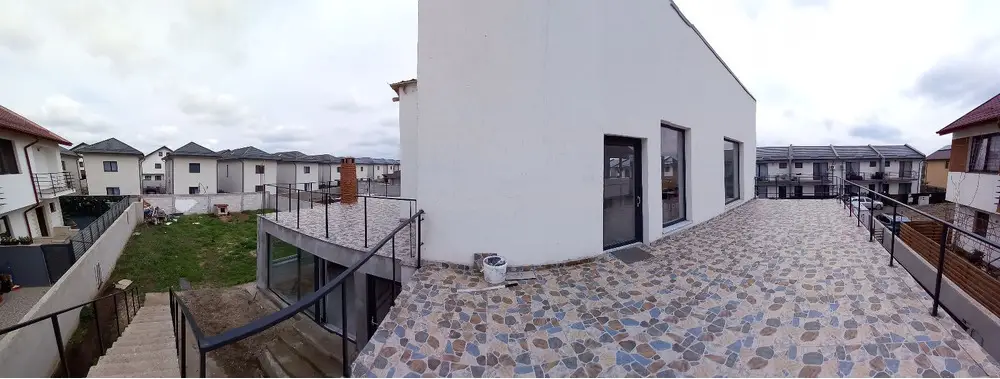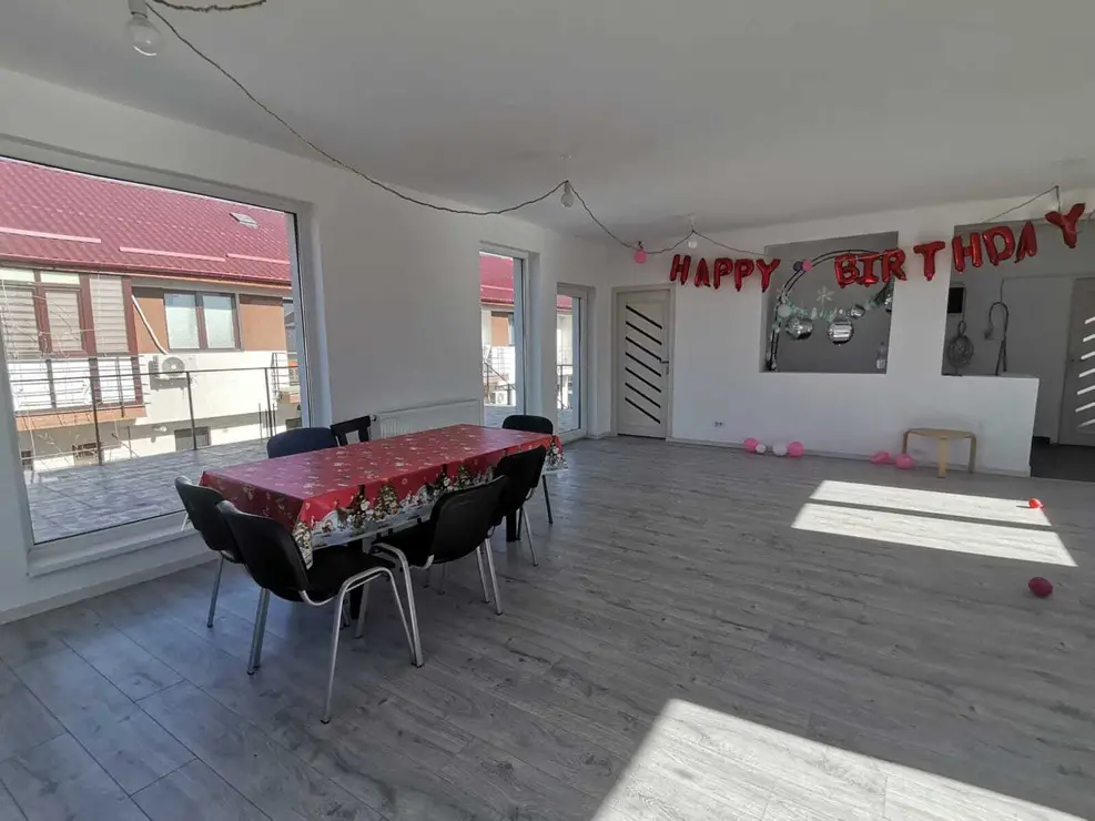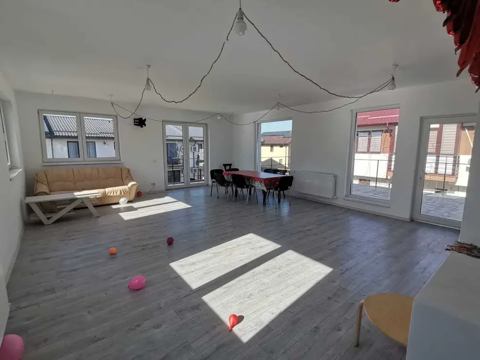 Proprietatea are un teren de 562 mp (cu amprenta casei) si beneficiaza de 2 terase mari de 70 mp in total (au fost lasate mustatile pentru a le putea inchide sau a ridica alte incaperi). Compartimentare:la parter avem un spatiu de 60 mp, 2 bai, bucatarie inchisa cu 2 cuptoare, pizza si gratar, scara de acces. La etaj avem o sala mare open-space, grup sanitar si 2 terase (plus un balcon 3 mp). Suprafata utila 150 mp. S.totala 205 mp.