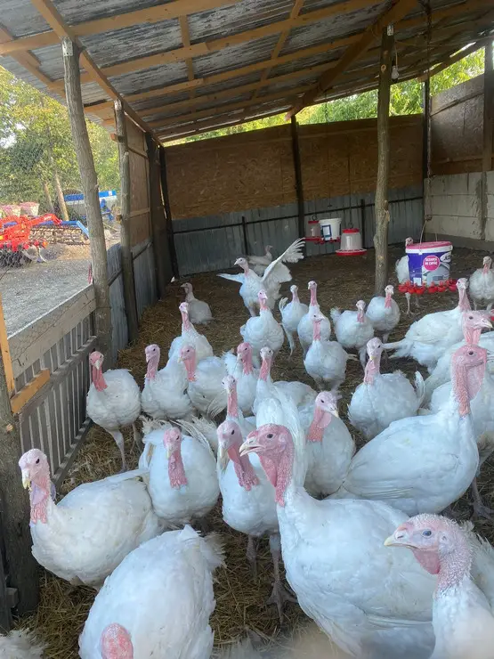 Vând curcani albi cu greutate cuprinsă între 10-12 kg. Prețul pe kg este 30 de lei în viu ,iar sacrificați 35 de lei.