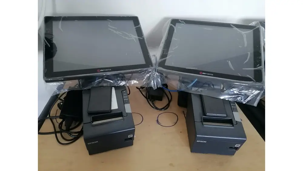 Vând soluție completă POS cu ecran capacitativ și licență sistem de operare Windows inclusă: PC All-in-One COLORMETRIX P1000 POS TouchScreen Projected Capacity